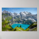 Poster print of the turquoise Oeschinensee lake, surrounded by high alpine mountains on a summer day in the Alps, high above Kandersteg in Bernese Oberland, Switzerland.