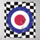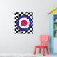 Alvo retroformado dos modos vermelho, branco e azul no plano de fundo da verificação em preto e branco