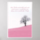 Sou Ende wird alles gut sein und wenn es nicht gut ist, dann ist es nicht das Ende. Angelehnt an ein Zitat von Oskar Wilde. Einzelner Baum auf pinker Wiese mit blauem Himmel.