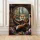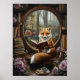 Entre numa encantadora biblioteca florestal com esta impressão artística de uma raposa caprichosa, apresentando uma curiosa raposa vermelha a ler um livro junto a uma janela circular com vista para uma floresta mágica. Rodeada por livros antigos, biscoitos quentes, margaridas e uma vista acolhedora de outono, esta cena de fantasia é perfeita para amantes de livros, decoração de berçário florestal ou qualquer pessoa que adore ilustrações encantadoras de animais. Uma bela adição a casas cottagecore, cantos de leitura aconchegantes e coleções de arte caprichosa.