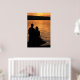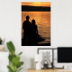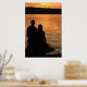 Esta poster de fotografia de arte apresenta dois amantes na silhueta desfrutando do pôr do sol no lago de Cayuga em Ithaca, Nova Iorque. Linda cor laranja, amarela e dourada das ondas e ondulações em um padrão abstrato. Este é um dos lagoas dos Dedos do norte de Nova Iorque.