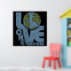 Ame um ao outro em texto grunhido com a Terra como a letra O no amor. Afirmação diária sobre amar um ao outro por um mundo melhor.