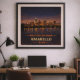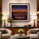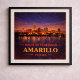 Capture the sprawling horizon and glowing city lights of the Texas Panhandle with this Amarillo Centennial poster. Commemorating the 100th anniversary of Route 66, this vintage-inspired artwork features the Amarillo skyline reflecting across the water under a vast, star-studded night sky. The design blends the golden warmth of the setting sun with deep indigo tones, celebrating the rugged spirit and historic significance of this major stop on the Mother Road.