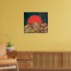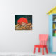 Uma paisagem colorida elegante com sol vermelho, ondas do mar em cores vibrantes, pretas, brancas reelaboradas de uma antiga miniatura japonesa. Amaterasu é parte do ciclo do mito japonês e também uma grande divindade da religião Shinto. Ela é a deusa do sol, mas também do universo. O nome Amaterasu derivado de Amateru significava "brilhar no céu." Amaterasu-ōmikami significa "o excelente August kami (deus) que brilha no céu".Para Amaterasu também é creditado que inventou o cultivo do arroz e do trigo, o uso de bichos-da-seda e tecelagem com o tear.