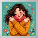 Uma linda moça de arte folclórica em um suéter confortável se abraçando. Lembre-se de que o amor próprio é importante com esta bonito ilustração do ai.