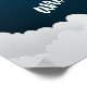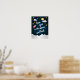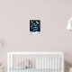 Arte de parede adorável para o quarto do seu pequeno aventureiro mostra a citação de "te amo na lua e nas costas" em um fundo azul marinho com estrelas, luas, planetas, nuvens e um foguete.