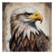 Uma águia americana com uma aquarela detalhada com olhos expressivos é retratada contra um fundo macio e turvo. As cores naturais melhoram a aparência semelhante à vida.