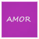 Amor é a palavra espanhola para amor. Branco em roxo.