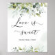Pôster de amor de verde eucalipto é doce. Sinal de mesa de chá de noiva. Itens correspondentes disponíveis.