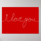 Design do tema romântico - Cor do fundo vermelha com as palavras "Eu te amo" num estilo de letra branco manuscrito