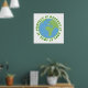 Amar, proteger, respeitar, salvar o planeta Terra Poster. Ele apresenta a Terra em padrão verde e azul com o texto "Ame-a, proteja-a, respeite-a, salve-a" e em volta dele o mesmo texto.