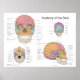 A anatomia do crânio humano mostra os ossos cranianos, marcos, suturas, foramões, septo nasal, mandíbula e dentes.