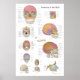A anatomia do crânio humano mostra os ossos cranianos, marcos, suturas, foramões, septo nasal, mandíbula e dentes. Seção sagital mostrando o interior do crânio e da coluna superior do colo do útero. Torção do septo nasal, seios nasais e ossos orbitais.