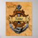 Helma e âncora do navio clássico de vintage, e um mapa de vintage do fundo das Bahamas. E um espaço para adicionar seu monograma, nome, ou até mesmo o nome da sua nave.