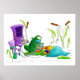 Doutor Sapo, o Anestesiologista está colocando seu paciente, a tartaruga laranja, para dormir na sala de cirurgia no meio de seu lago mágico! A máquina de anestesia roxa sobe das águas do lago junto com cattails e lentes, enquanto o Doutor Sapo, máscara e luvas e tudo mais, segura a máscara sobre seu companheiro sonolento. Um presente divertido para qualquer pessoa envolvida em cirurgia, medicina ou saúde. Personalize o tamanho e o papel deste impressão de arte inteligente e até adicione um quadro para decoração sem complicações!