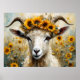 Poster Angora Goat Adorável nos Campos de Girassol
