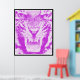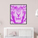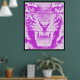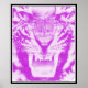 Purple and white. Line art of a ferocious animal. teeth, fur, rage, big cat. saber-toothed, stalking, tiger cub, tigerish, tiglon, tigon, tigress