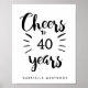 Um moderno sinal de "Cheers to 40 anos", que você pode personalizar facilmente com seu nome. Excelente para um aniversário de 40 anos, festa de aposentadoria, etc.