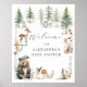 Bovinos bonitos e doces num cenário de floresta de pinheiros de montanha, um urso com uma coroa foliar na cabeça, um veado, raposa, coelho, ouriços e um pássaro são cercados por cogumelos e flores silvestres com vegetação foliar verde. Perfeito para um chá de fraldas neutro por sexo ou para um menino ou menina. Existe uma coleção completa de produtos disponível para coordenar: MSP0104