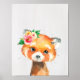 Poster Animais Panda Vermelho Bebê Floral Aquarela