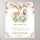 Poster Animais Selvagens Safari Pink Floral Bebê Rosa Bem