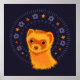 Poster de furão bonito com uma ilustração digital em amarelo, laranja e roxo representando um desses adoráveis animais fofos sorrindo, elementos decorativos, flores e estrelas ao seu redor. presente de excelente para uma mãe furtiva.