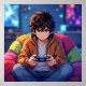 Poster para um garoto que gosta de jogar videos games. Excelente para pré-adolescentes e adolescentes. Anime jogando videos games com um olhar sério.