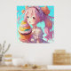 Bonito arte branca de anime roxa e cor-de-rosa em roxo, rosa, azul e amarelo.