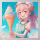 Menina de anime segurando um cone de sorvete com arte química.