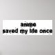 Anime Salvou Minha Vida Uma Vez. Adquira este design divertido com seu passatempo, ocupação ou obsessão em t-shirts, adesivos e muito mais. Eles também fazem presentes de excelente!