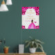 Poster Aniversário da Princesa Pele Escura Rosa-Quente