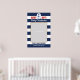 Este é um pôster de moldura para fotos tema marítimo para festa de bebê menino com listras de azul-marinho e âncora