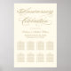 Gráfico de assentos de comemoração do aniversário de casamento do programa Elegante de caligrafia em ouro design poster apresenta um monograma dos nomes de casais e data de casamento e texto de modelo personalizado para oito (8) números de tabela com nomes de convidados. As cores incluem marfim e ouro de champanhe.