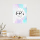 Um poster de aniversário com um design de aquarela moderno de abstrato. As cores azul e púrpura se misturam e se misturam em um padrão de abstrato de cor pastel mole. Uma sensação suave de sono para esta design. Artístico, na moda e bonito. Um círculo por cima com sua dentro de texto.