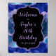Este elegante e glamouroso sinal de boas-vindas festas de aniversário apresenta um fundo mármico azul escuro com sotaques de brilho azul falsos. O texto combina o script manuscrito e as fontes sans serif modernas para um aspecto elegante e sofisticado. As sequências e a textura em apuros criam a mistura perfeita de chic e grunge.
