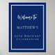 Um fundo azul marinho e um quadro branco. Personalize e adicione um nome e uma idade.
