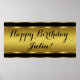 Poster de faixa de festa de aniversário escura e dourada. Esta bela faixa de aniversário preto e dourado é facilmente personalizada para o seu evento simplesmente adicionando o seu texto no estilo de letra, tamanho e cor da sua escolha. Você também pode mudar a cor de fundo para qualquer sombra que você precise.