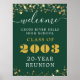 Bem-vindos alunos à sua reunião de segundos graus ou de colégios (editável para qualquer ano de reunião) com esta elegante placa de impressão de poster de cores personalizada que inclui estrelas douradas, luzes de cordas, tipografia de scripts de caligrafia e personalizada com seu nome de escola e ano de aulas de graduação. A amostra mostrada está em verde-escuro, ouro e branco — todas as cores podem ser alteradas para serem coordenadas com as cores do tema da escola ou da festa. OPÇÕES: O exemplo é mostrado em um tamanho de 18 x 24 pol em Papel de Valor (Matte) — outros tamanhos e qualidade de papel, arquivo de Download Digital instantâneo para impressão local ou para transferir o design para outro produto, como um conselho de espuma, faixa, tapeçaria, etc., estão disponíveis na página de pedido. DICA DE REDIMENSIONAMENTO: Use a seção ESCOLHER SEU TAMANHO abaixo de "Tamanhos Padrão" se ocorrerem bordas irregulares e clique primeiro no ícone UNLOCK (parece um link de cadeia) antes de inserir as novas dimensões de largura e altura. Ajuste as novas dimensões proporcionalmente adicionando ou subtraindo aproximadamente o mesmo número de polegadas em ambos os tamanhos originais (talvez seja necessário ajustar incrementalmente para alcançar bordas externas iguais). ASSISTÊNCIA: Para obter ajuda com a modificação ou personalização do design, alteração de cor, redimensionamento, transferência do design para outro produto ou, se você quiser coordenar itens, entre em contato com o designer ANTES DE PEDIR, através da guia MENSAGEM de bate-papo Zazzle ou por e-mail em makeitaboutyoustore@gmail.com.