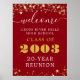 Bem-vindos alunos à sua reunião de segundos graus ou de colégios (editável para qualquer ano de reunião) com esta elegante placa de impressão de poster de cores personalizada que inclui estrelas douradas, luzes de cordas, tipografia de scripts de caligrafia e personalizada com seu nome de escola e ano de aulas de graduação. A amostra mostrada está em vermelho, ouro e branco — todas as cores podem ser alteradas para serem coordenadas com as cores do tema da escola ou da festa. OPÇÕES: O exemplo é mostrado em um tamanho de 18 x 24 pol em Papel de Valor (Matte) — outros tamanhos e qualidade de papel, arquivo de Download Digital instantâneo para impressão local ou para transferir o design para outro produto, como um conselho de espuma, faixa, tapeçaria, etc., estão disponíveis na página de pedido. DICA DE REDIMENSIONAMENTO: Use a seção ESCOLHER SEU TAMANHO abaixo de "Tamanhos Padrão" se ocorrerem bordas irregulares e clique primeiro no ícone UNLOCK (parece um link de cadeia) antes de inserir as novas dimensões de largura e altura. Ajuste as novas dimensões proporcionalmente adicionando ou subtraindo aproximadamente o mesmo número de polegadas em ambos os tamanhos originais (talvez seja necessário ajustar incrementalmente para alcançar bordas externas iguais). ASSISTÊNCIA: Para obter ajuda com a modificação ou personalização do design, alteração de cor, redimensionamento, transferência do design para outro produto ou, se você quiser coordenar itens, entre em contato com o designer ANTES DE PEDIR, através da guia MENSAGEM de bate-papo Zazzle ou por e-mail em makeitaboutyoustore@gmail.com.