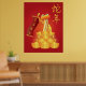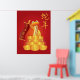 Ano Novo Chinês do Cobra de Segurando a Caligrafia Deslocada Desejando Prosperidade com Pilha de Bares Dourados Poster