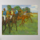 Antes da Raça (1887-1889) de Edgar Degas é uma pintura icônica que captura a tensão e a antecipação diante de uma corrida de cavalos. A cena está num estábulo, onde um grupo de jockeys se prepara para a corrida à frente. A pintura retrata lindamente o movimento dinâmico dos jockeys e cavalos, com ênfase na muscularidade dos cavalos e nas posturas focadas pelos jockeys. O uso assombroso, por Degas, de tons de terra ricos e de escovas detalhadas cria uma sensação de imediatez e energia. A composição enfatiza os momentos silenciosos, mas intensos, antes do entusiasmo da corrida. A obra reflete o profundo entendimento de Degas sobre o corpo humano e seu fascínio pelo movimento, fazer-o como um exemplo definidor de seu domínio na captação de momentos de ação fugazes.