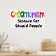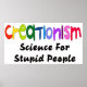Em uma fonte apropriada de giz com cores brilhantes, a palavra "criacionismo" se destaca acima das palavras menores "ciência para pessoas estúpidas."