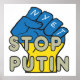 O design Anti-Putin apresenta um punho ucraniano nas cores da bandeira da Ucrânia com "Nyet" escrito nos dedos e as palavras "Stop Putin".