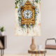 Theme: The clock is framed by climbing vines and white flowers.