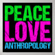 Antropologia do Amor pela Paz escrita em verde-neon, rosa e azul legal, fonte angustiada para um olhar brilhante. Um presente bonito para o seu antropólogo ou professor de antropologia favorito.