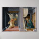 A Anunciação (1485) por Sandro Botticelli é uma pintura religiosa de arte fina da Era Renascentista. Uma fileira de pilares divide a cena de perspectiva de um ponto com o Anjo Gabriel à esquerda da Virgem ajoelhada enquanto ela recebe a mensagem divina em seu quarto.