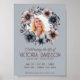 Compartilhe a notícia do falecimento de um ente querido com dignidade e graça usando este modelo de anúncio para o Facebook com moldura de flores em aquarela azul claro. Com um design elegante e minimalista, oferece espaço para uma foto, detalhes importantes e uma mensagem sincera.