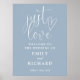 Este sinal de boas-vindas de casamento com letra elegante azul poeira pode ser personalizado com todas as informações especiais do seu dia de casamento. Criado por Thisisnotme©