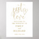 Este sinal de boas-vindas de casamento com guião dourado pode ser personalizado com todas as suas informações especiais sobre o dia do casamento. Projetado por Thisnotme©