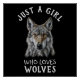 Uma bela imagem de lobo com texto que diz: "Apenas uma menina que ama lobos"